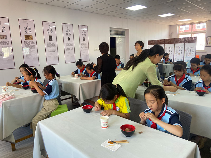8、5月29日,开展非遗进校园,走进清苑三小,香艺师讲解古法篆香并让孩子们动手体验