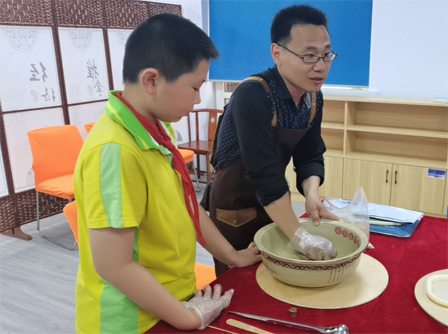在初步了解了家乡这项国家级非物质文化遗产之后,同学们便动手实践,他们亲自动手和面、压制香条、理香、盘香,让香粉在自己手中逐渐成型。